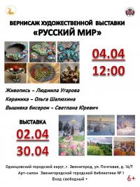 В субботу, 4 апреля,в 12:00 часов дня в арт-салоне Звенигородской городской библиотеки № 1 состоится вернисаж выставки "Русский мир". Приглашаем всех желающих, вход на мероприятие свободный. » (подробнее)