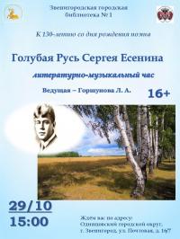 29 октября в 15:00 в арт-салоне Звенигородской городской библиотеки № 1 состоится литературно-музыкальный час, посвященный 130-летию со дня рождения Сергея Есенина.  » (подробнее)
